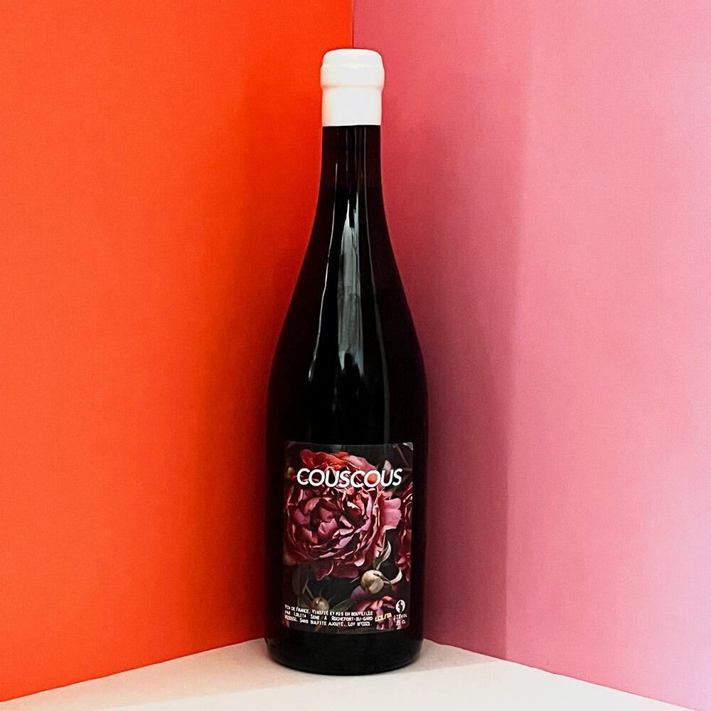 発酵過程の間、マラケシュのスーク(北アフリカの市場の名前)、スパイス、モロッコの暑さのようなにおいがしました。そのイメージか ら伝統的なモロッコ料理のクスクスを名前に選びました。ブドウはロリータのブドウ畑から50%、パートナーであるニコラ・ルノーのブドウ 畑から50%を使用しています。子供を出産した年で、あまり収穫に参加できなかった為、ワインがどうなるか予想がつきにくかったと言います。収穫後、ブドウは古い木製プレスで圧搾され、別々のタンクに入れられます。果汁は4月にアッサンブラージュして瓶詰めを行いました。