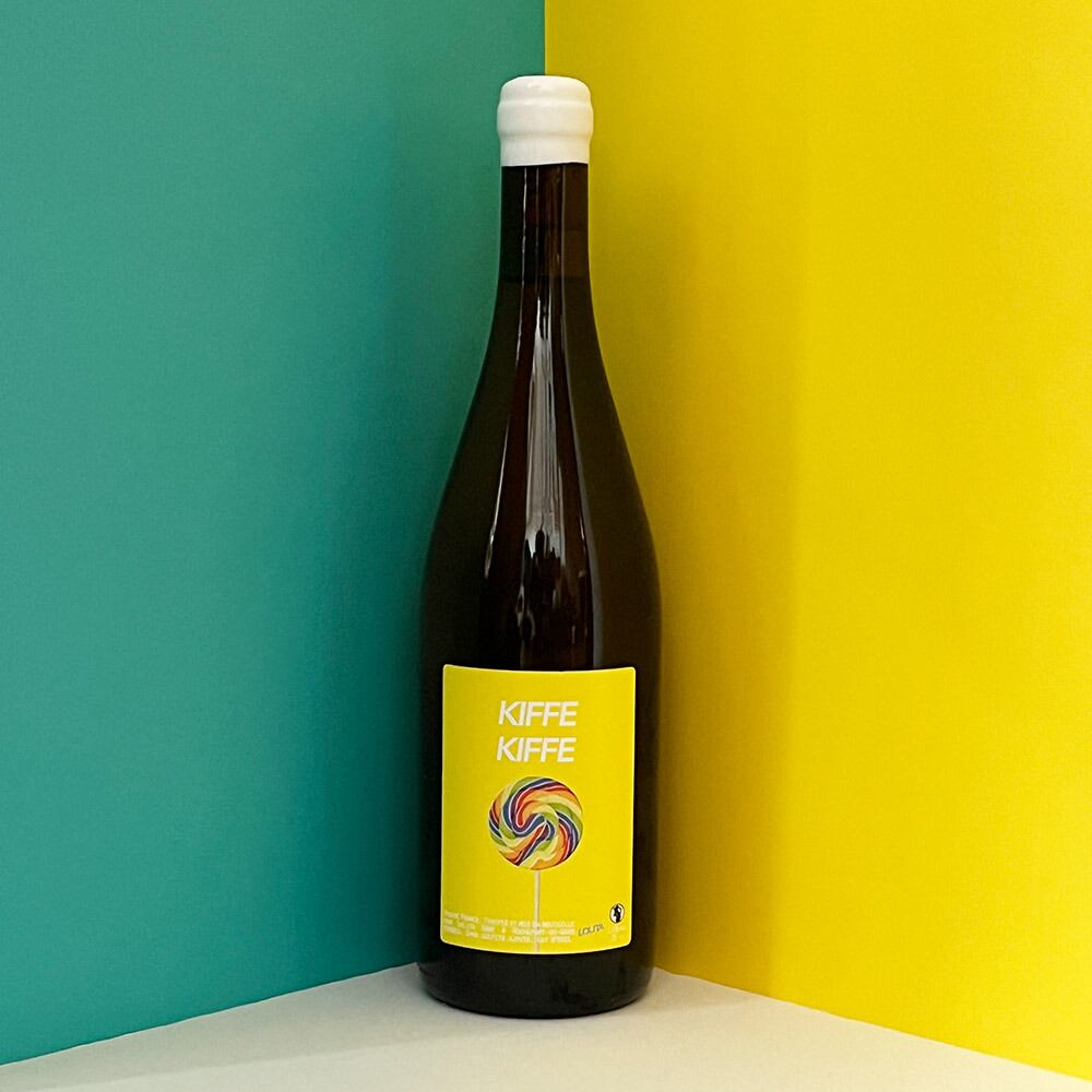 フランス語のスラングで「kif-kif(キフキフ)」は「ほぼ同じ」を意味し、動詞の「kiffer(キフェ)」は「好き」を意味します。そこで彼女は2つ を組み合わせてこのキュヴェの名前にしました。子供を出産した年であまり収穫に参加できなかった為、ワインがどうなるか予想がつきに くかったとロリータは言います。最初はグルナッシュ・ノワールを使って以前造ったロリタックスのようなダイレクトプレスのワインを作りたかっ たのですが、ニコラの空圧式プレス機を初めて使用したところ、いつもの手動の木製プレス機とは違いかなり強い力で圧搾された為、 果汁はブラン・ド・ノワールのように白くなりました。だったらブラン・ド・ノワールにしてみようということで今回のキフキフは誕生しました。