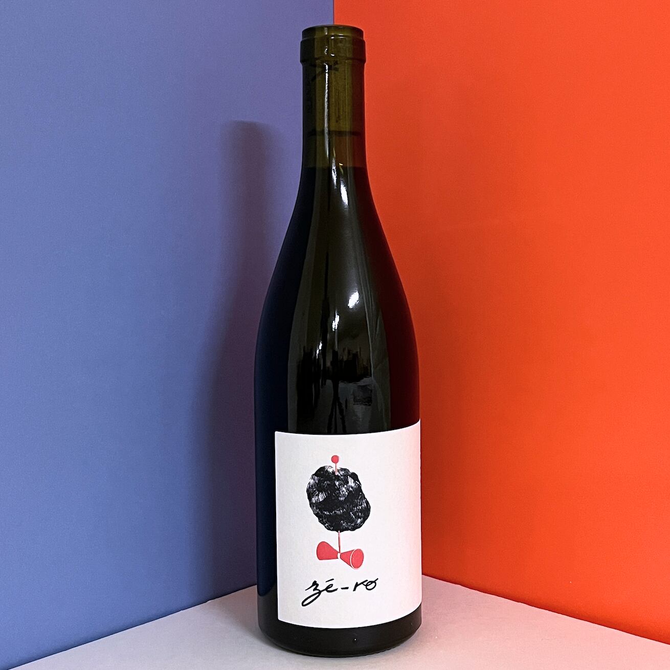 キュヴェの名前は、何も添加していない”ゼロ”の意味で完全に自然な造り方であることを意味しています。また、ロゼの逆読みという言葉遊びも含まれています。ただ、今年に関しては着色もしっかりしており、ダイレクトプレスの割合が少なく醸しの期間が長かったので赤としてのリリースです。黒と白のブドウを遊び心たっぷりにブレンドし、さまざまなテクニックを組み合わせて作られています。昨年同様、セパージュはシラーとヴィオニエで、ティボーのいるAOPコート・ロティに倣ったブレンドです。ヴィオニエとシラーのブドウは、南アルデシュのル・マゼルにあるジェラルド・ウストリックから購入しました。醸造に関しては、ヴィオニエの半分はダイレクトプレス、残りの半分はマセラシオンしています。ダイレクトプレスした果汁は500Lの樽で熟成され、マセラシオンした果汁はアンフォラで熟成されます。シラーは全房で醸造され、1週間マセラシオンした後、新たに導入したばかりの大きなコンクリートタンクで熟成させます。最後にアッサンブラージュしてボトリング。フレッシュな赤いベリー、野性のブラックベリーに柑橘類の爽やかさ。スミレの花のようなチャーミングなワインです。