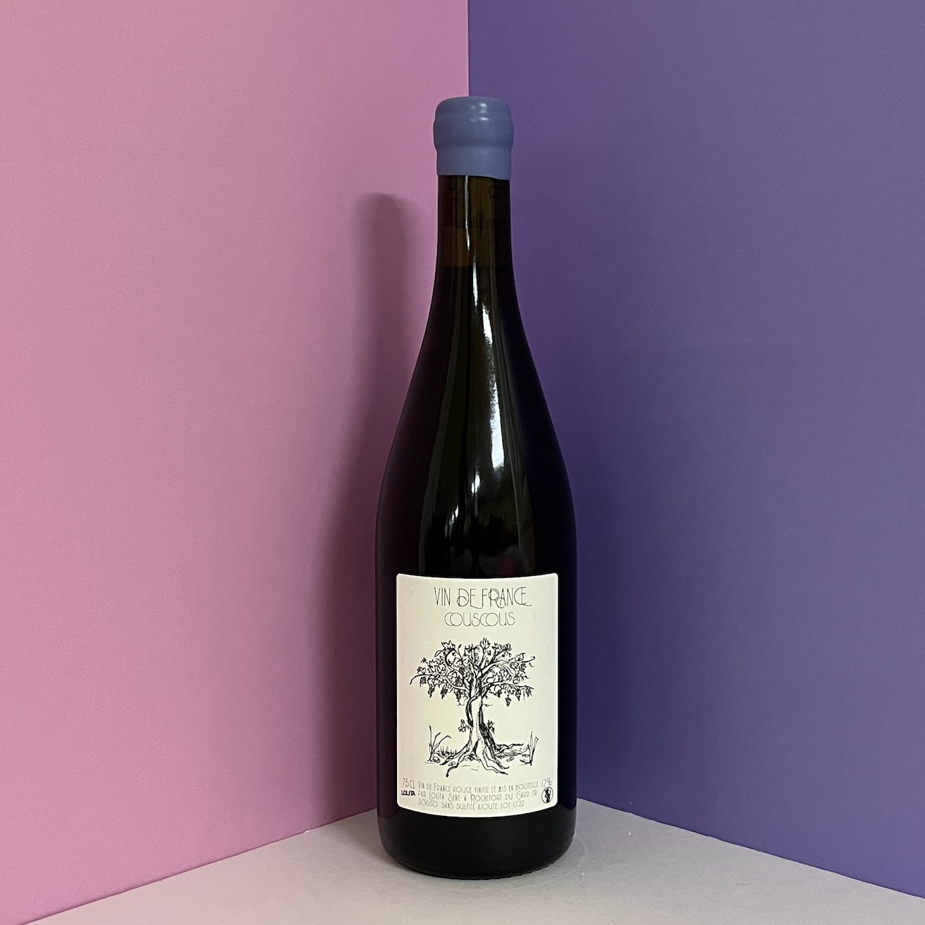 醸造工程から言えば赤ワインですがクスクス2022は非常に軽い仕上がりです。味わいとしてはタンニンがほとんどなく、純度の高い赤い果実ジュースのようなフレッシュさがあり、飲んでいることを忘れるくらいスルスルと飲めてしまいます。夫であるクロ・デ・グリヨンのニコラ ルノーと共同で生産されたキュヴェで、ロシュフォール=デュ=ガル近郊の石灰岩土壌で有機栽培された若いサンソーを使用しています。8月中旬に手摘みで収穫し、全房で1週間マセラシオン・カルボニックを行い、空気圧プレスで優しくプレスします。タンク内で短期間熟成させたプリムールです。2022年10月12日に清澄や濾過を行わずに瓶詰めされ、亜硫酸塩の添加はゼロです。